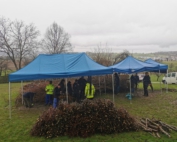 Letzten Samstag fand der erste Termin für das Binden der Krähle statt. Die Helfer:innen trotzten dem regnerischen Wetter und arbeiteten im Trockenen unter Pavillons. Am kommenden Wochenende ist ein weiterer Arbeitseinsatz geplant. Hoffen wir, dass das Wetter sich von einer schöneren Seite zeigt.